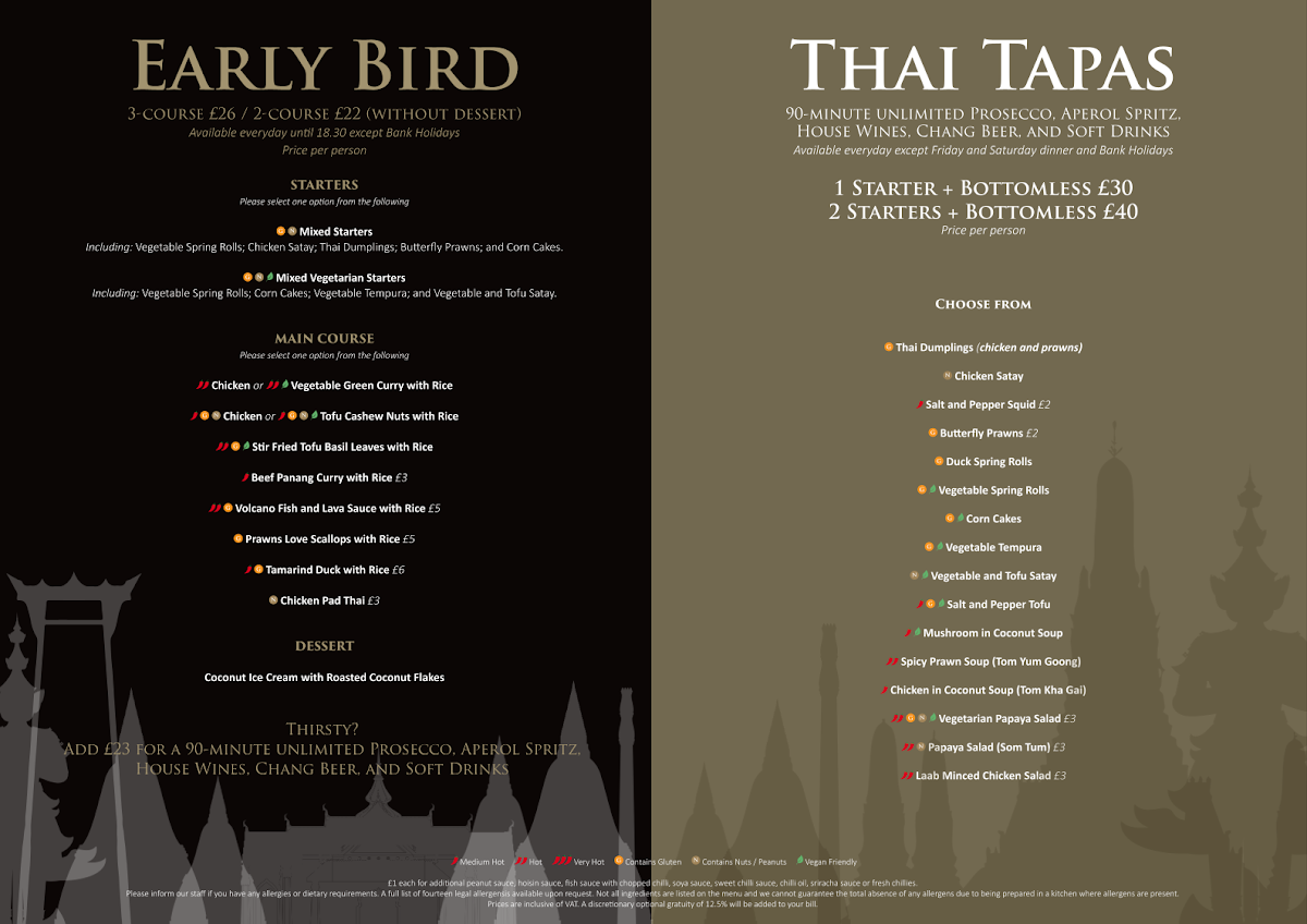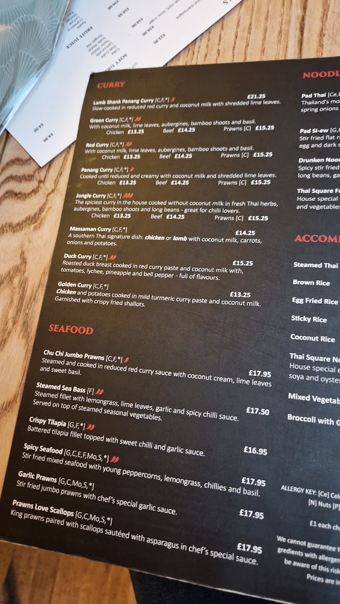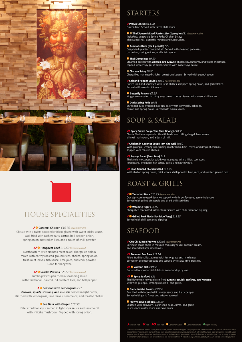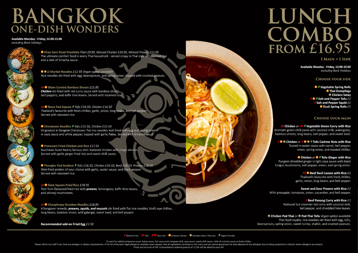 Welcome to Thai Square Islington, a culinary gem nestled in the heart of London. This vibrant Thai restaurant invites you to indulge in a tantalizing array of authentic dishes, expertly crafted to showcase the rich flavors of Thailand. Begin your gastronomic journey with delightful starters such as Thai Dumplings—steamed pockets of joy filled with minced chicken and prawns—or opt for the Thai Square Mixed Starters, perfect for sharing. The seafood offerings are a highlight, particularly the Crispy Tilapia and Chu Chi Jumbo Prawns, both swimming in aromatic sauces that elevate the natural flavors. Don’t miss the vegetarian delights like Corn Cakes and Salt and Pepper Tofu, providing a satisfying crunch paired with sweet chilli sauce. Each dish is a celebration of fresh ingredients and classic Thai spices, guaranteeing a memorable dining experience.